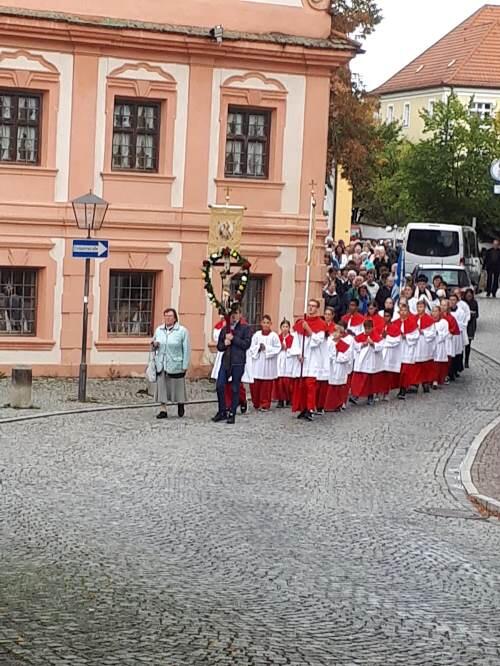 Um 11.00 Uhr begann das Wallfahrtsamt, zelebriert von H.H. Offizialatsrat Alexander Lungu im Kongregationssaal. Besonders haben wir uns über die große Zahl (26!) Ministranten gefreut, die heuer mitgefahren sind.