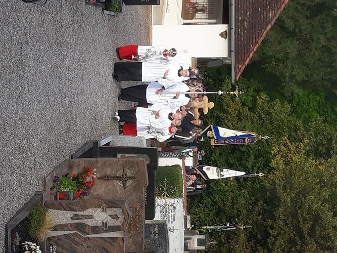 Traditionell begann das Hochamt mit dem Kirchenzug, begleitet von den "Högl-Buam" und den Fahnenabordnungen.