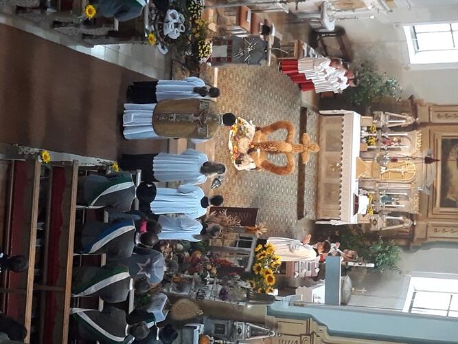 Vor Beginn des Hochamtes wurden die Erntegaben gesegnet. Die Kirche wurde wieder vom Frauenbund Baindlkirch wunderschön geschmückt.