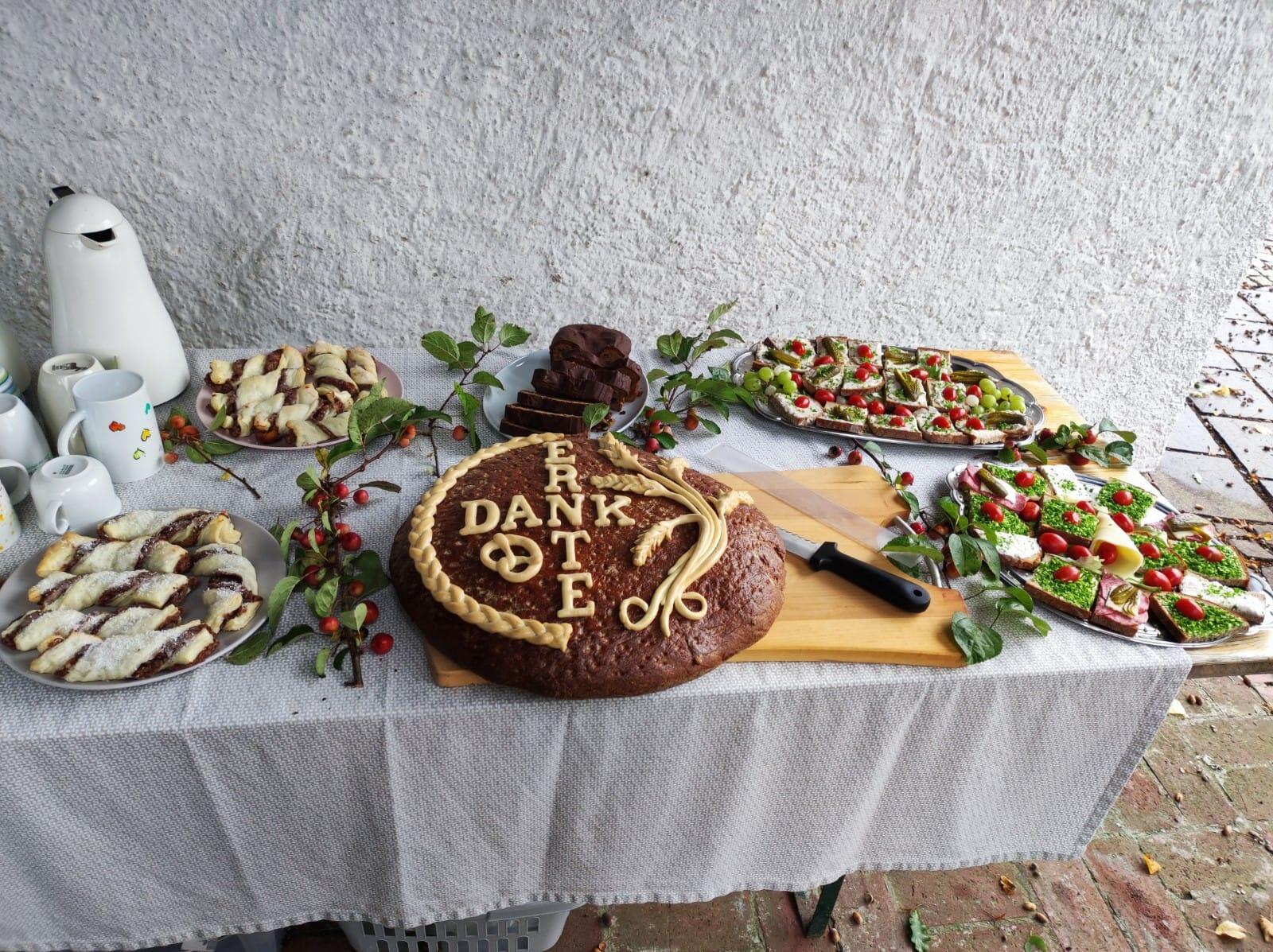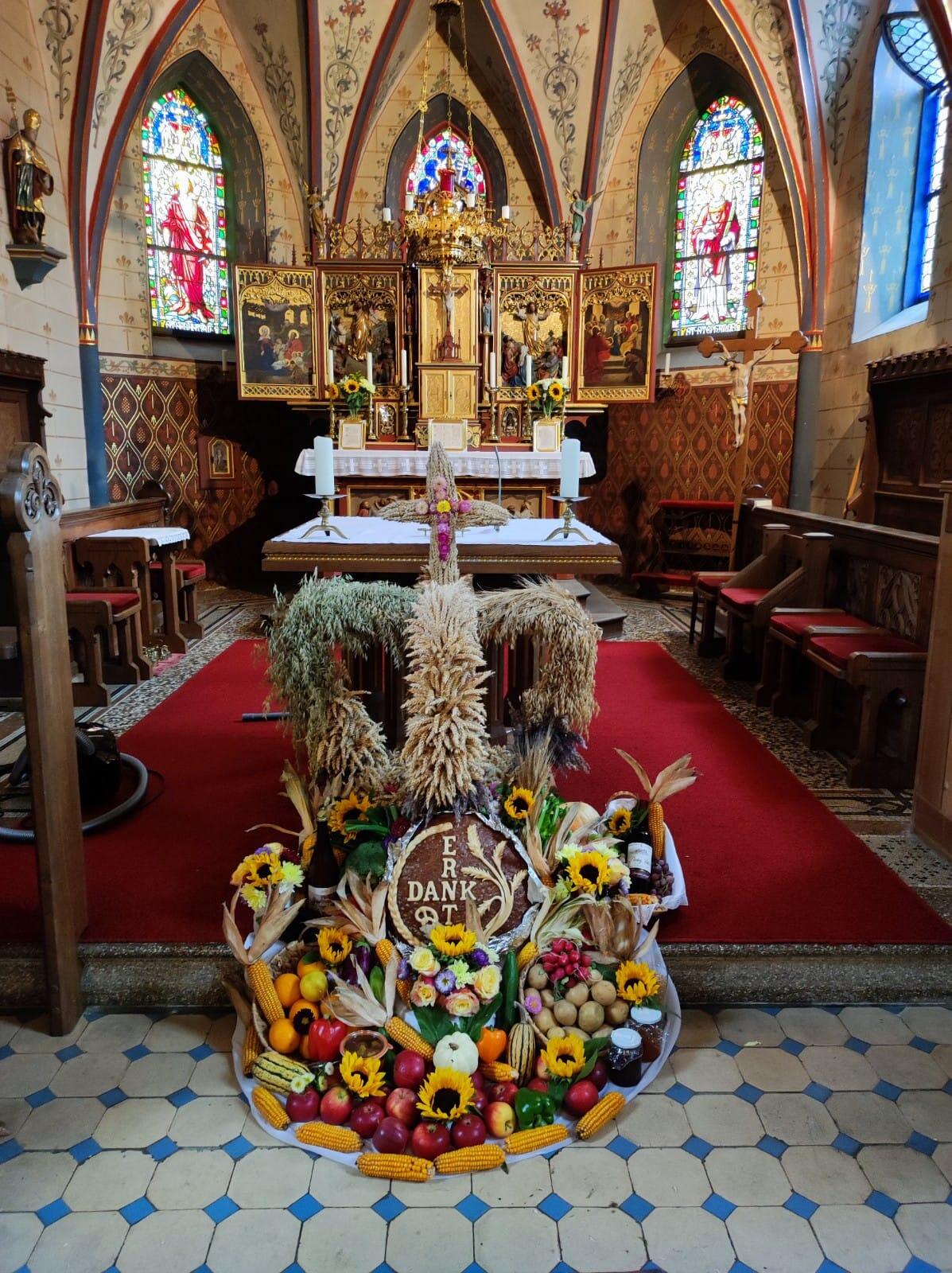 Vom Pfarrgemeinderat wurden die Erntegaben in der Pfarrkirche schön aufgerichtet. Anschließend gab es ein Erntedankbuffet