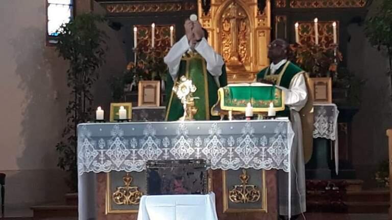 Familiengottesdienst und Verabschiedung von Pfr. Dr. Felix Onwukike in St. Walburga, Ried